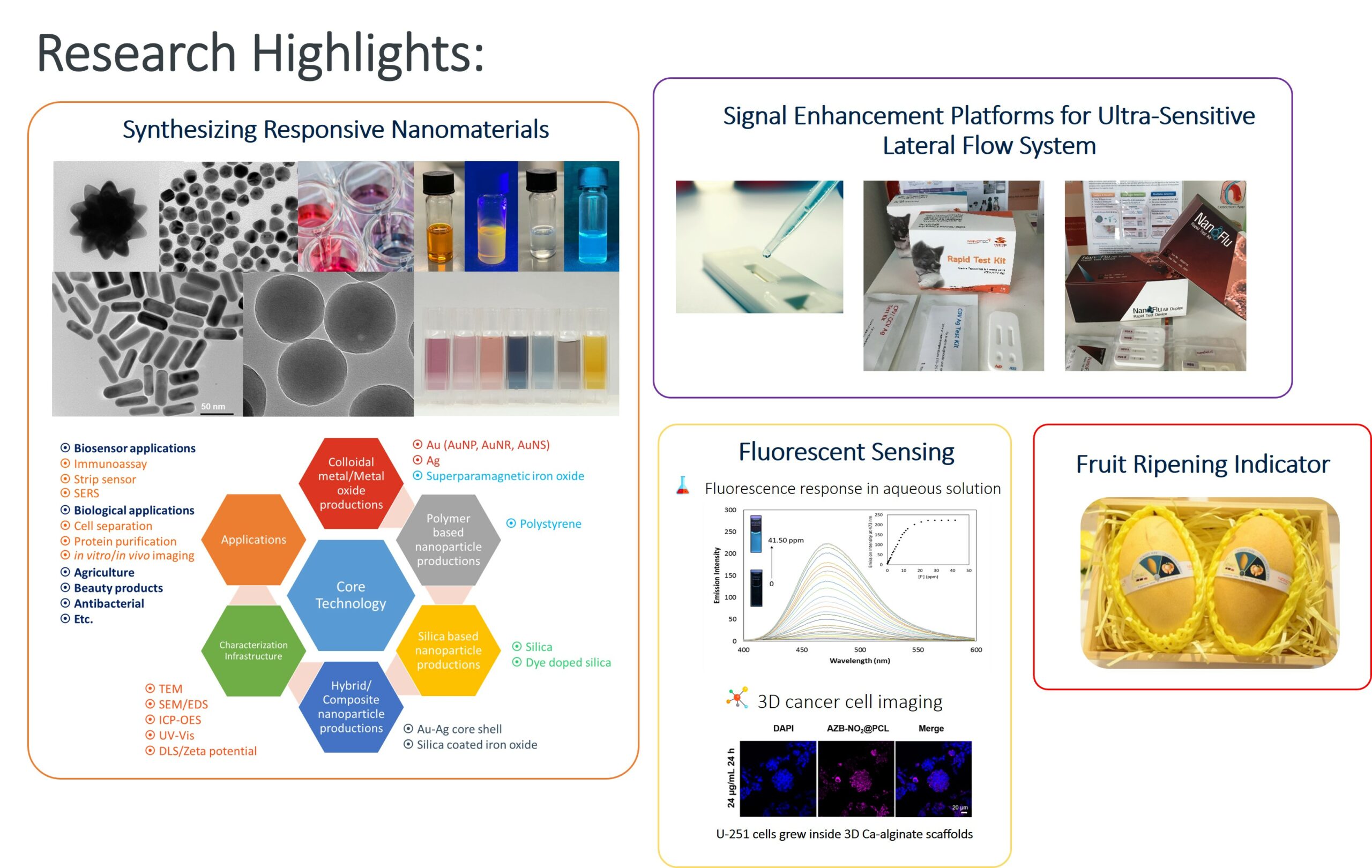 Our team focus on controlled design and synthesis of functional and responsive nanostructured materials. We explore their intrinsic properties and develop sensing platforms based on their properties for a variety of fields ranging from chemical sensing, food pathogen detections, plant disease detections, to biomedical diagnostics.