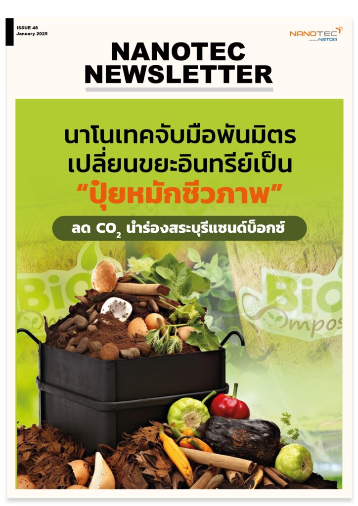 จากชีวมวลเหลือทิ้งทางการเกษตร รวมถึงขยะอาหาร ถ้าคำนวณจากขยะอาหารที่ถูกทิ้งทั่วโลก พบว่า มีการปลดปล่อยก๊าซเรือน กระจกมากถึง 8% นอกจากนี้ หากนำอาหารมาเปลี่ยนเป็นปุ๋ยด้วยกระบวนการย่อยสลายที่เกิดจากการหมัก ก่อให้เกิดก๊าซมีเทนซึ่งเป็นก๊าซเรือนกระจก ที่ส่งผลต่อภาวะโลกร้อน รวมถึงเป็นแหล่งเชื้อโรค และกลิ่นเหม็นรบกวน NANOTEC Newsletter ฉบับนี้ จะพาไปคุยกับ “ดร. เล็ก-สัญชัย คูบูรณ์” นักวิจัยจากนาโนเทค สวทช. และทีมวิจัย ที่พัฒนาเครื่องย่อยระบบถังคู่ (BioComposter) พร้อมใบพัดที่ออกแบบให้เร่งกระบวนการย่อยสลาย ตัวช่วยเปลี่ยน “ขยะอินทรีย์” ไม่ว่าจะเป็นของเหลือทางการเกษตร หรือขยะเศษอาหาร สู่ “ปุ๋ยหมักชีวภาพ” พร้อมจับมือไบโอเทค พัฒนาหัวเชื้อจุลินทรีย์เฉพาะสำหรับขยะอินทรีย์ในไทย หนุนลดการปลดปล่อยก๊าซมีเทนและก๊าซคาร์บอนไดออกไซด์จากขยะอินทรีย์ที่มาจากขยะอาหารและวัสดุเหลือทิ้งทางการเกษตร ต้นตอภาวะโลกร้อน-ฝุ่น PM2.5